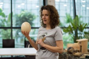 Na co dzień pracuję jako edukatorka przyrodnicza – prowadzę warsztaty, prelekcje i spacery. Dużą część czasu w sezonie wiosenno-letnim zajmują mi także monitoringi, inwentaryzacje przyrodnicze, czy montaż i konserwacja budek lęgowych dla ptaków.